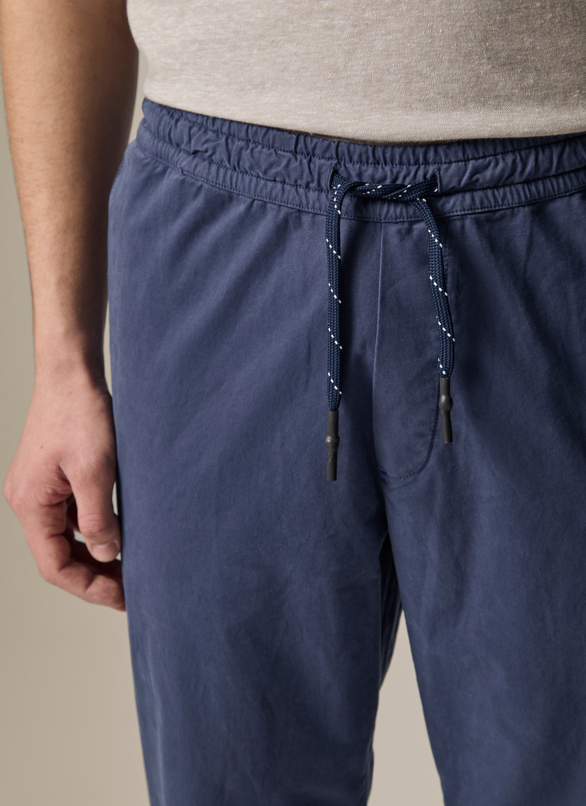Die Hose zeigt sich im Regular Fit mit seitlichen Eingriffstaschen. Der elastische Gummibund und die Schnüre zum Binden bieten hohen Tragekomfort und eine individuelle Passform. Material: aus Baumwolle gefertigt, ist sie besonders atmungsaktiv und angenehm auf der Haut. Die einzigartige Farbgebung entsteht durch den Garment-Dye-Prozess. Haptik: der weiche Stoff sorgt für eine angenehme Bewegungsfreiheit und bleibt auch nach mehreren Waschgängen formstabil. Styling-Tipp: Perfekt kombinierbar mit einem T-Shirt und Sneakers für einen entspannten Freizeitlook.