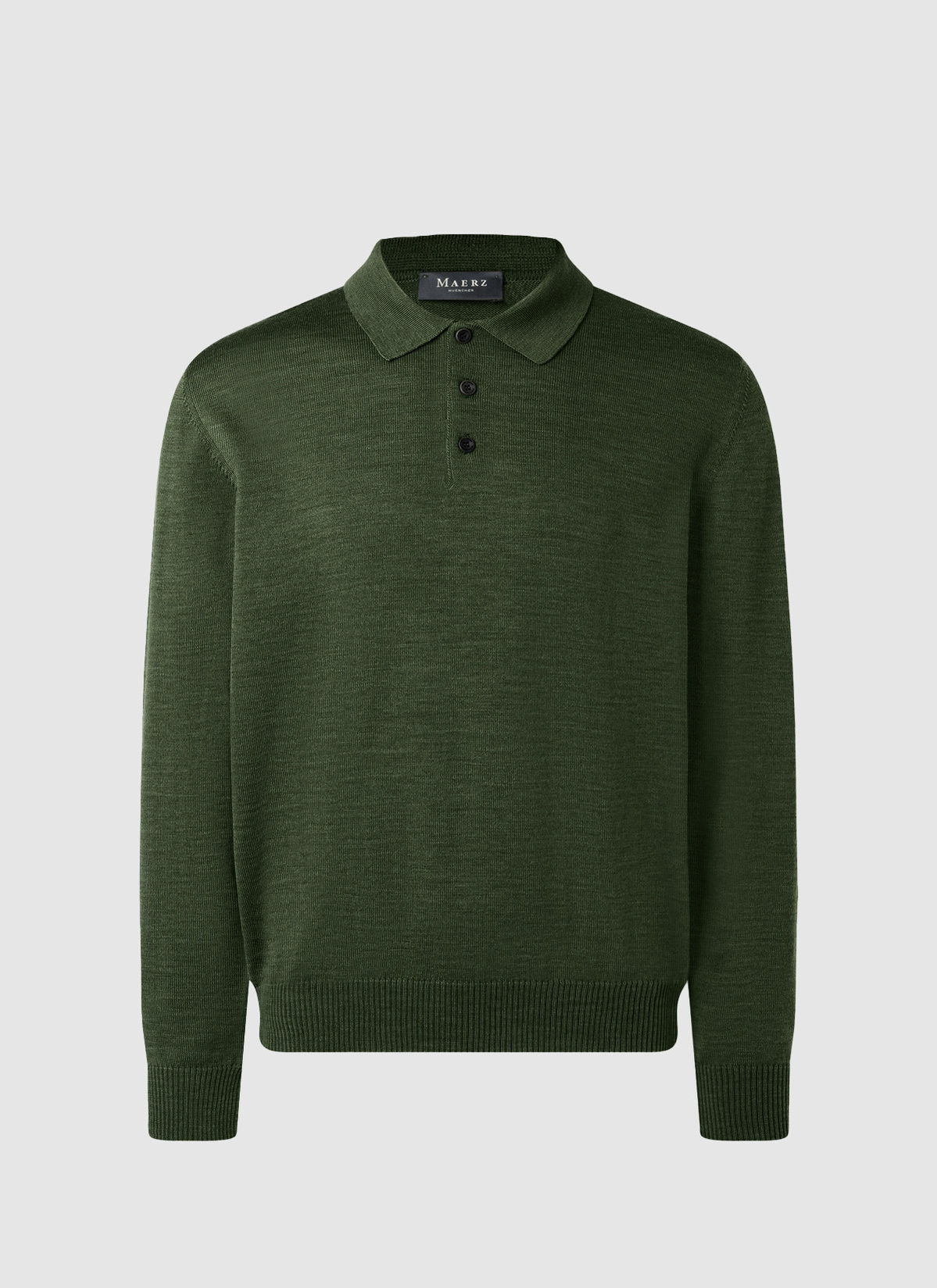 MAERZ Herren Kleidung Polokragenpullover|100% Merinowolle | Moos Garden