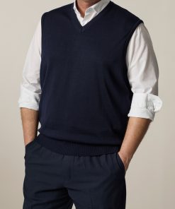 MAERZ Herren Kleidung Pullunder|100% Merinowolle | Navy