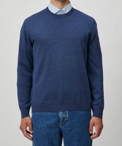 MAERZ Herren Kleidung Rundhalspullover|100% Merinowolle | Deep Sea