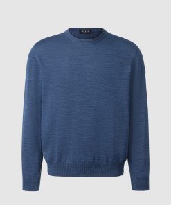 MAERZ Herren Kleidung Rundhalspullover|100% Merinowolle | Deep Sea