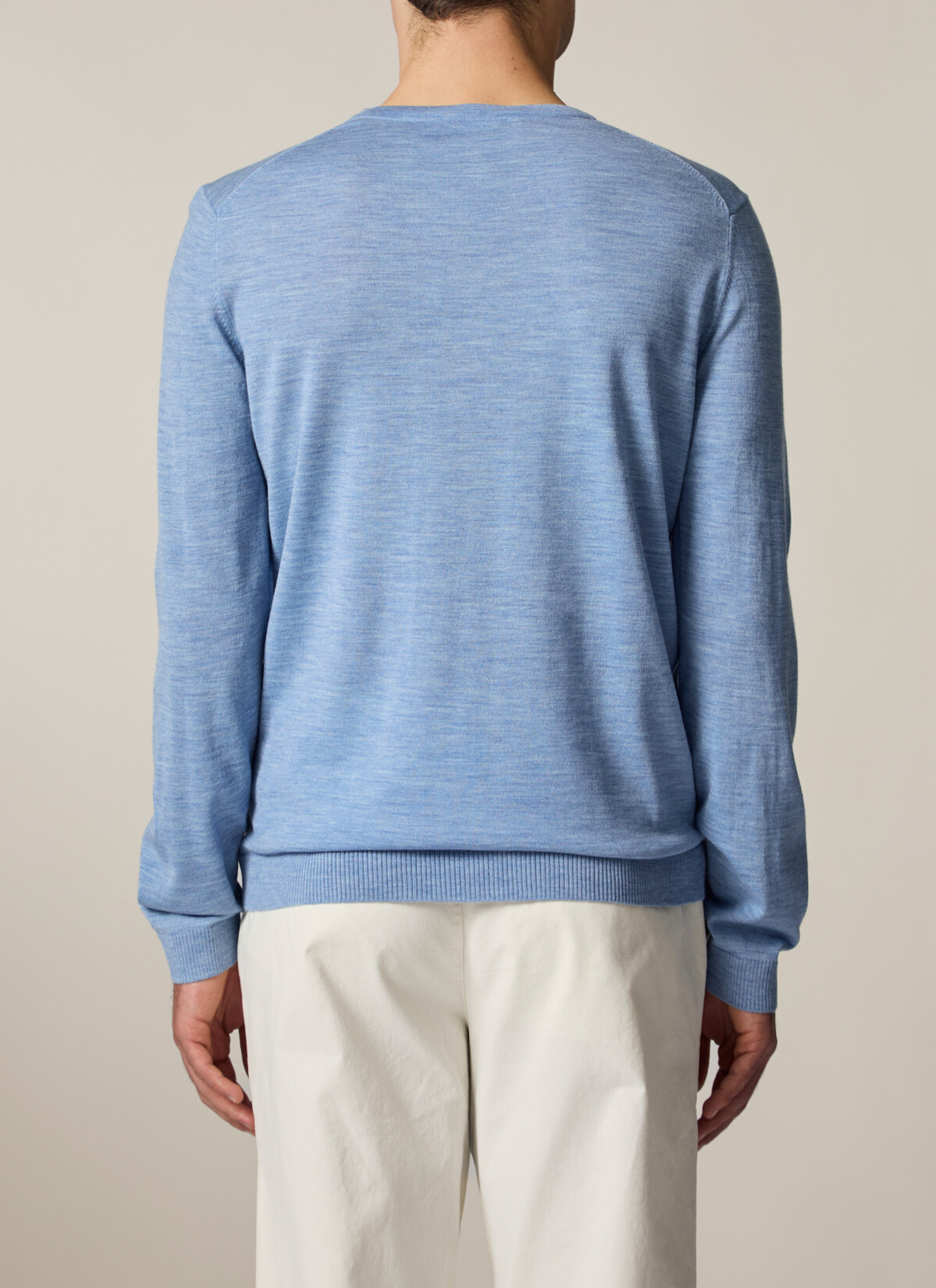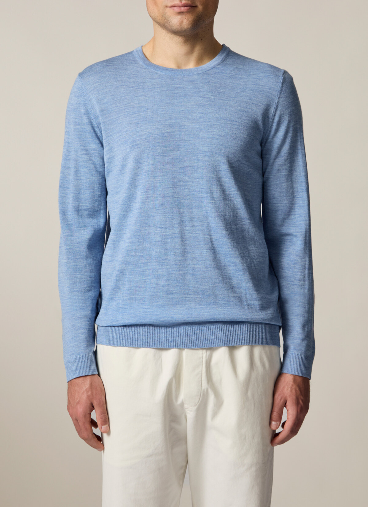MAERZ Herren Kleidung Rundhalspullover|100% Merinowolle | Whispering Blue