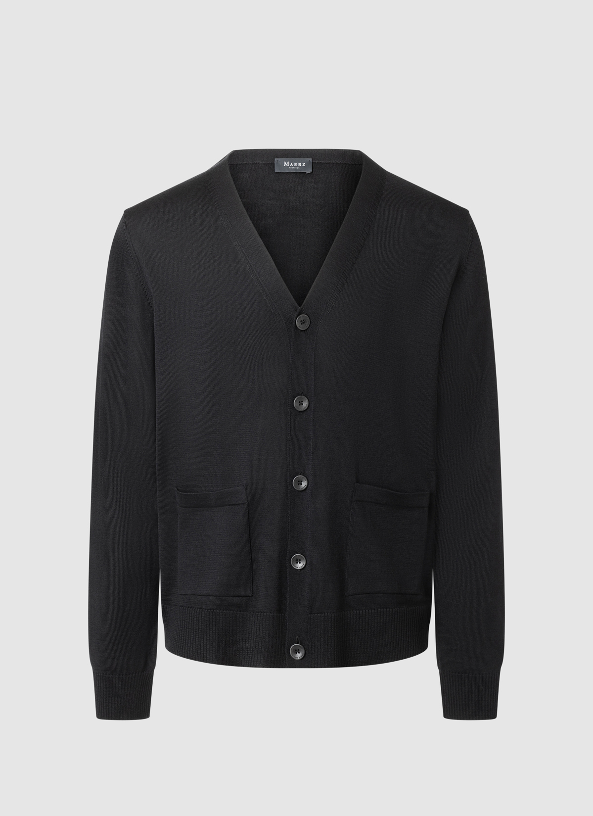 MAERZ Herren Kleidung Strick Cardigan|100% Merinowolle | Black