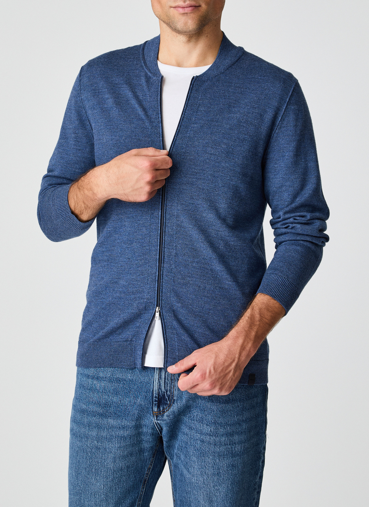 MAERZ Herren Kleidung Strickjacke|100% Merinowolle | Nimes Blue