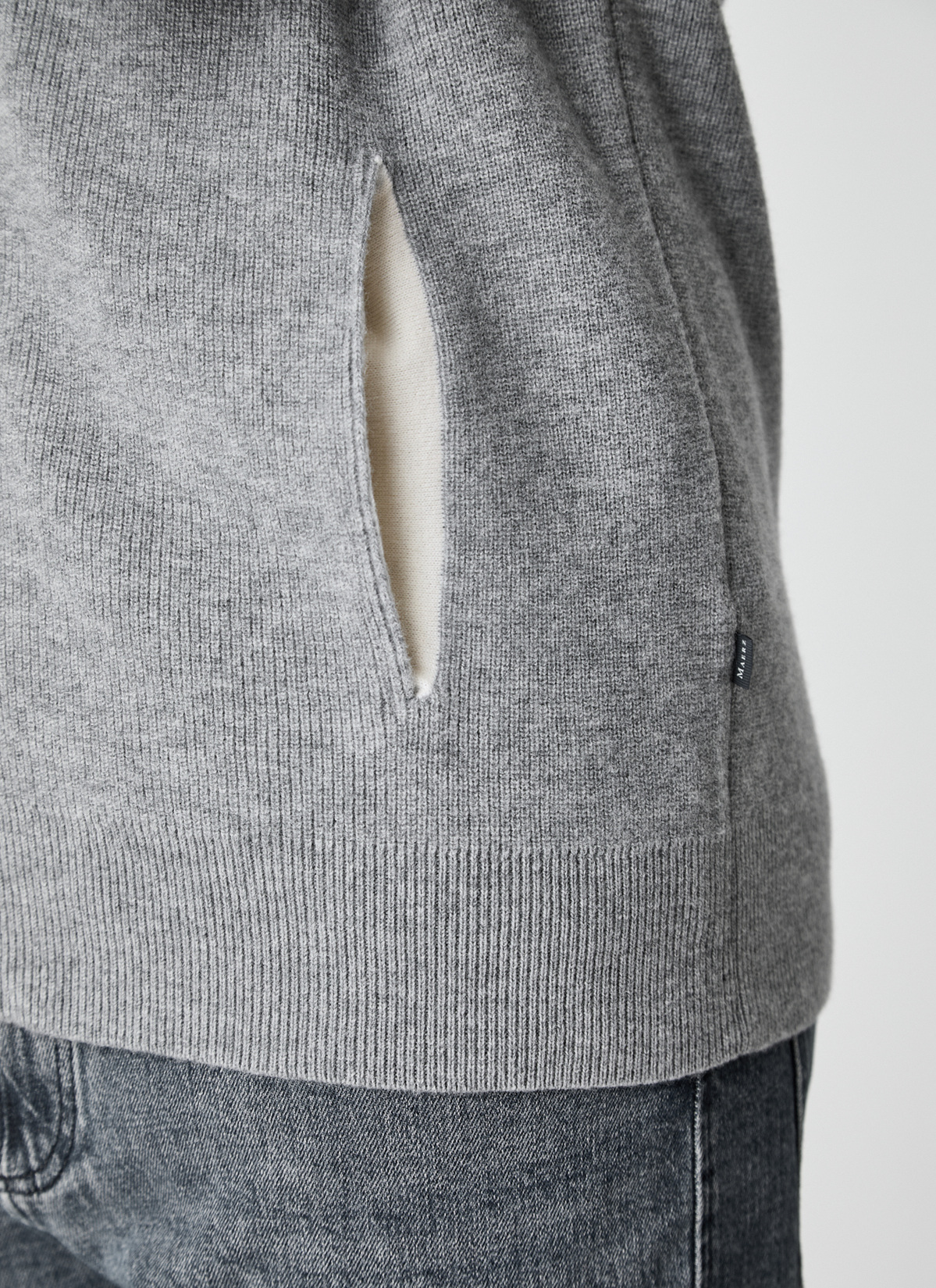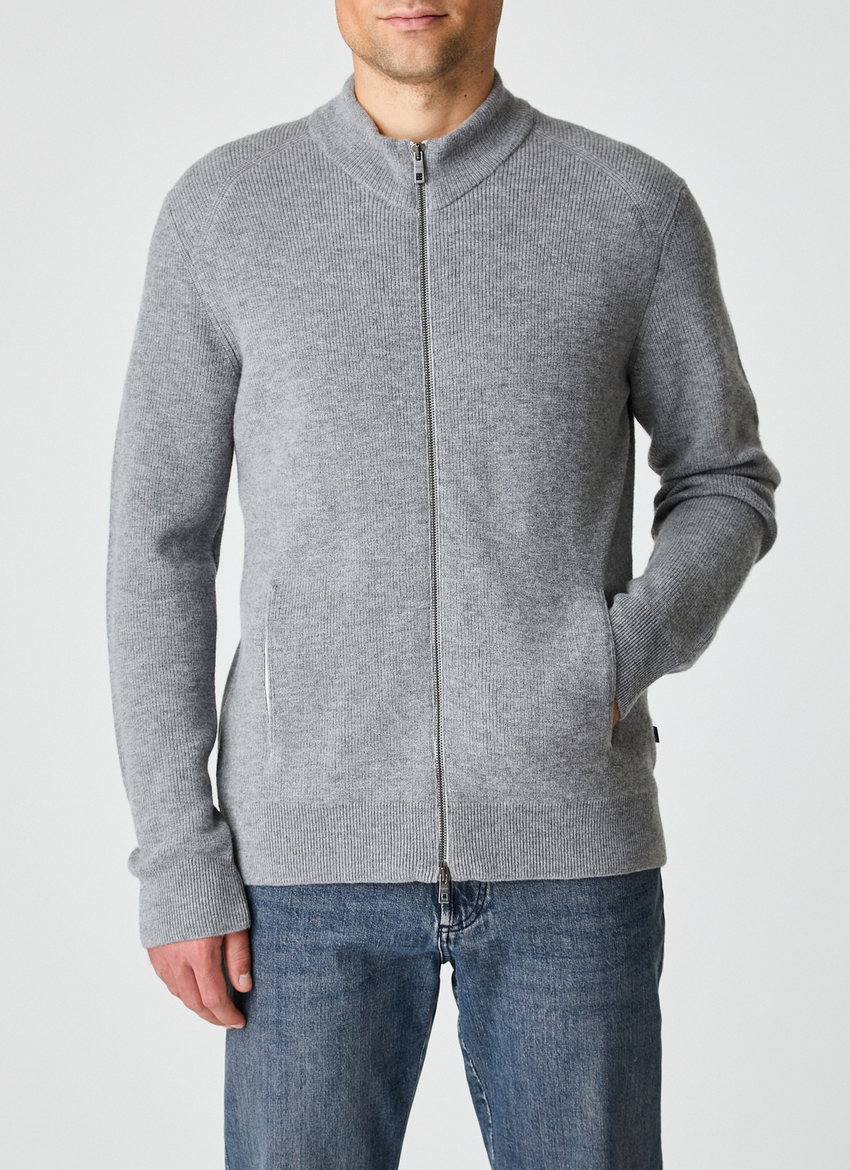 Diese edle Herren-Strickjacke aus 100% feinster Merinowolle vereint zeitlose Ästhetik mit außergewöhnlichem Tragekomfort. Die hochwertige, temperaturausgleichende Naturfaser fühlt sich angenehm weich auf der Haut an und überzeugt durch ihre langlebige Qualität. Ein markanter Stehkragen, der elegante Zwei-Wege-Reißverschluss und zwei dezent eingearbeitete Eingriffstaschen verleihen dem Modell eine gepflegte, maskuline Ausstrahlung. Der reguläre Schnitt sorgt für eine bequeme, formstabile Passform und unterstreicht den klassischen Charakter des Designs. Ein vielseitiger Begleiter, der klassisches Design mit luxuriösem Material verbindet.