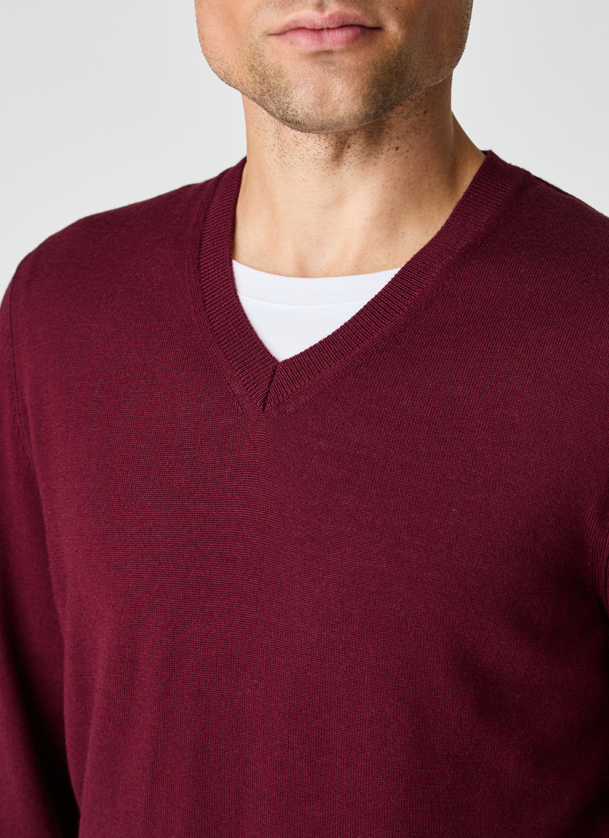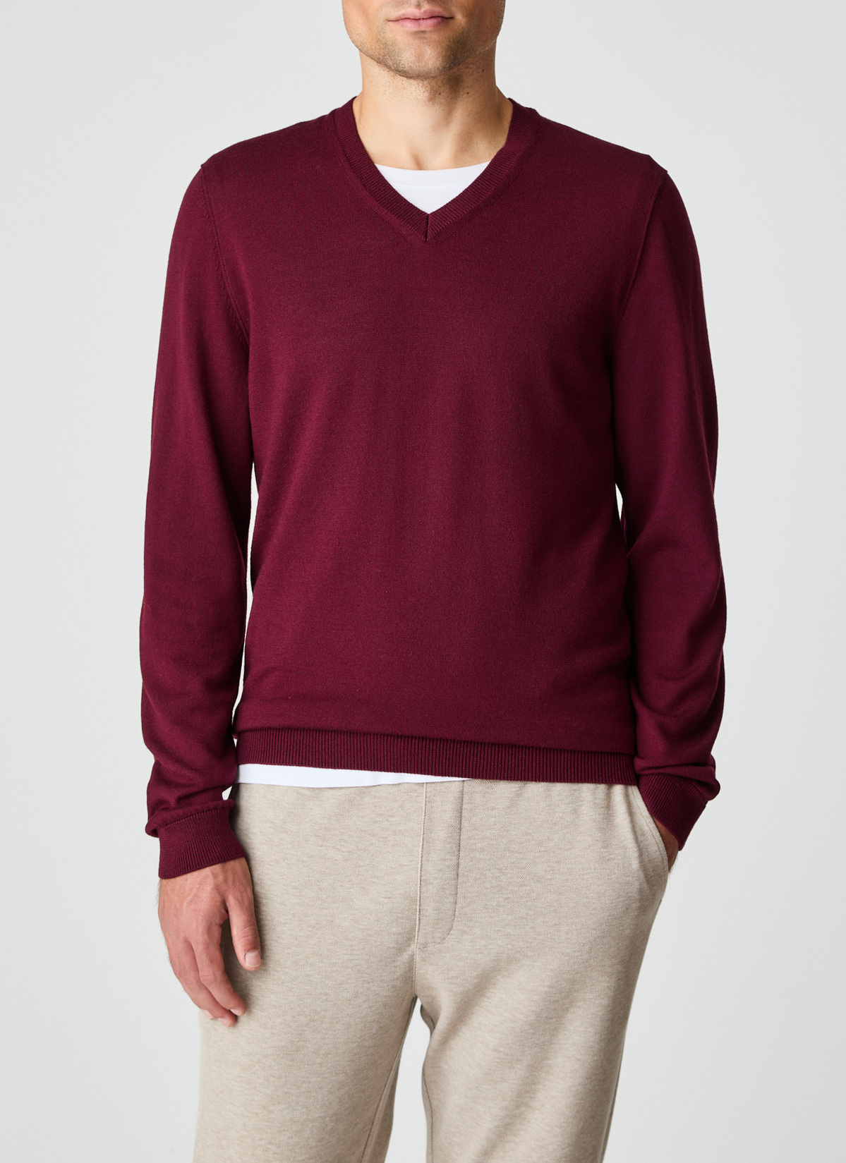 MAERZ Herren Kleidung V-pullover|100% Merinowolle | Barolo Wine