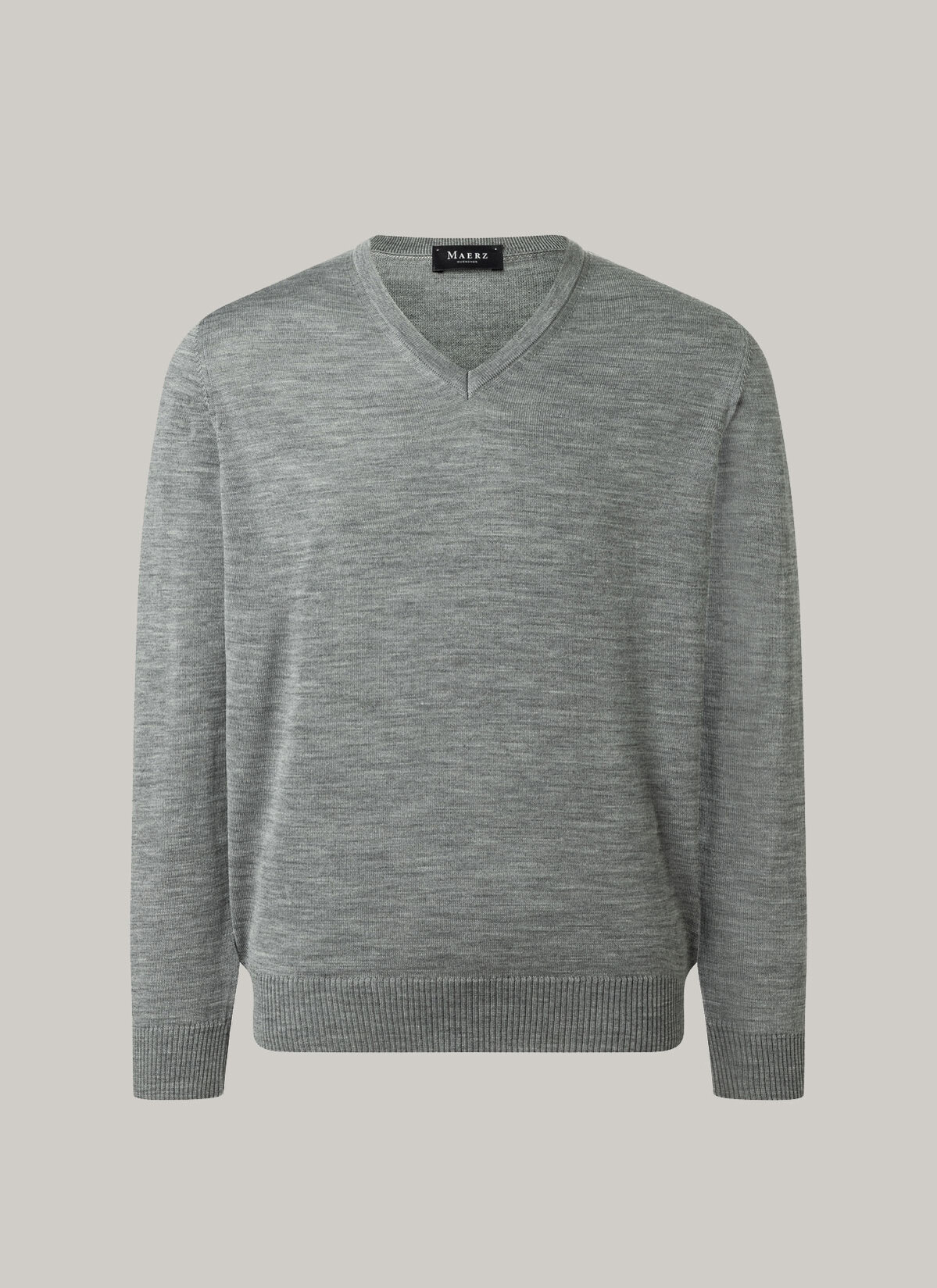 MAERZ Herren Kleidung V-pullover|100% Merinowolle | Mercury Grey