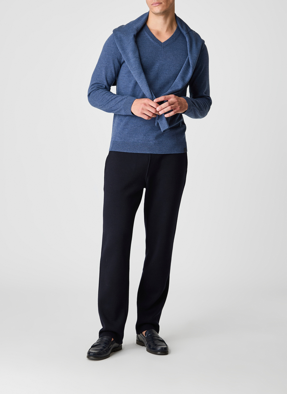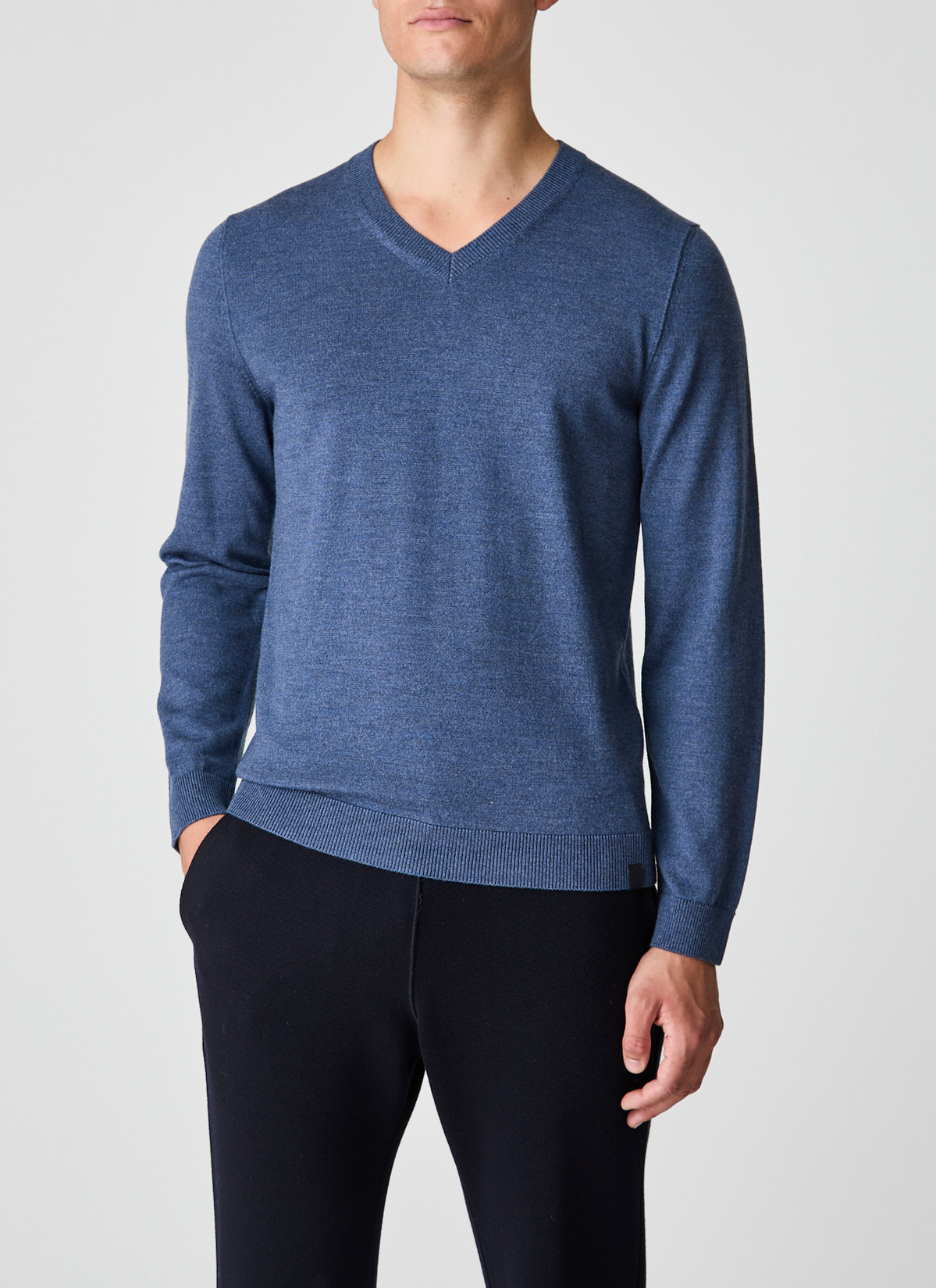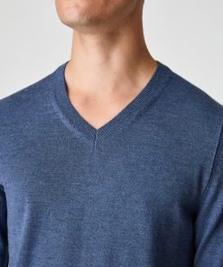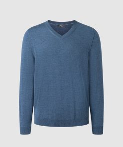 MAERZ Herren Kleidung V-pullover|100% Merinowolle | Nimes Blue