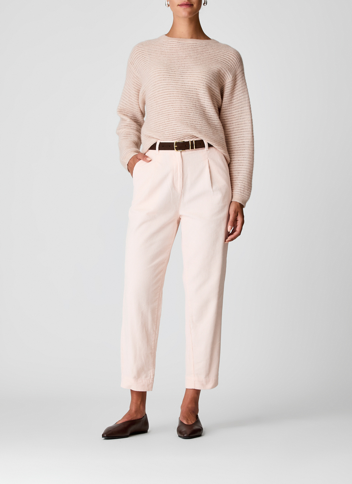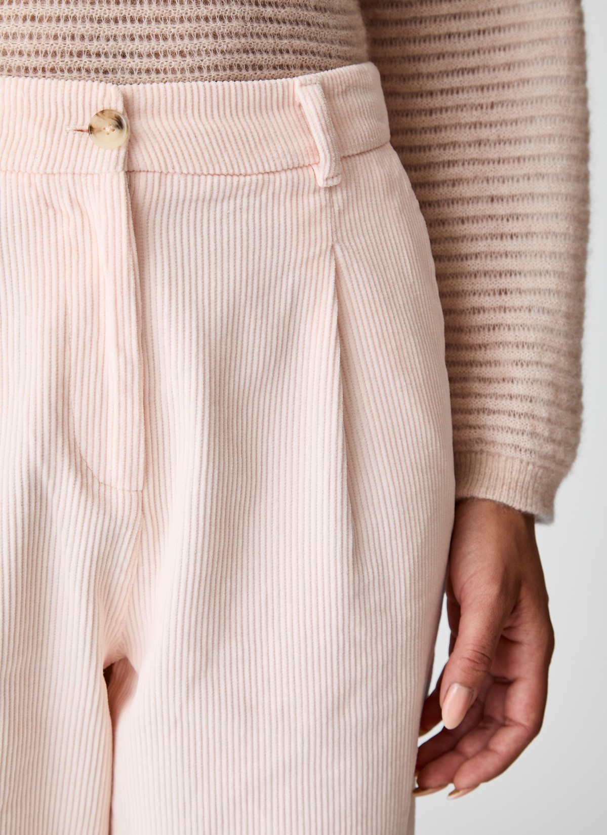 Diese Damenhoseaus hochwertigem, weichem Baumwoll-Cord bietet natürlichen Tragekomfort und eine edle Optik mit dezentem Strukturspiel. Der elastische Gummibund auf der Rückseite sorgt für eine bequeme Passform, ohne einzuengen – ideal für langes Sitzen oder bewegte Tage. Klassische Details wie seitliche Eingriffstaschen, Reißverschluss und Knopf auf der Vorderseite verbinden Funktionalität mit einem gepflegten Look. Der Modern Fit garantiert eine zeitgemäße Silhouette, die weder zu eng noch zu weit sitzt. Eine stilvolle Cordhose für vielseitige Kombinationen – angenehm zu tragen und langlebig zugleich.
