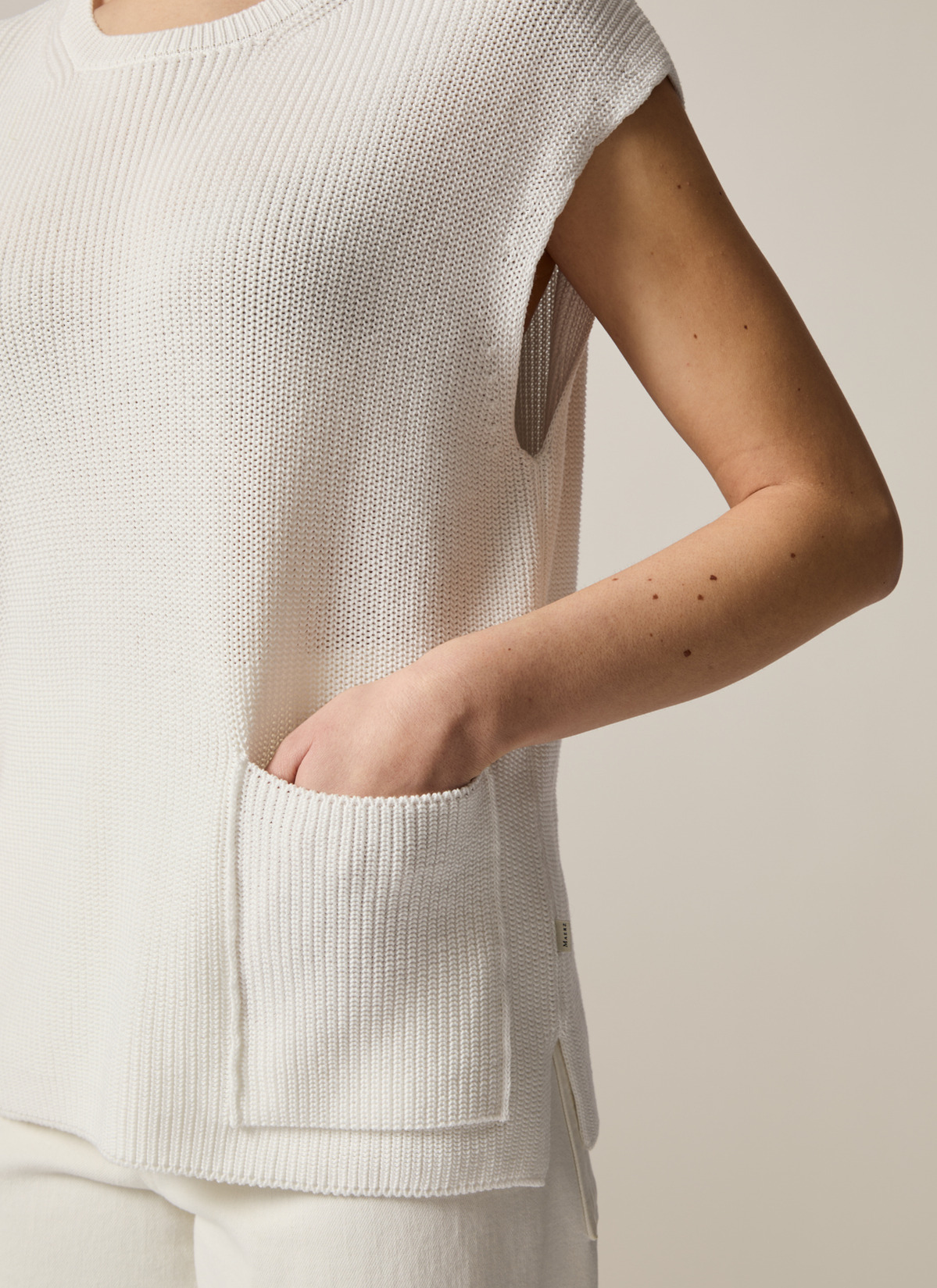 Der Pullunder zeigt sich im Modern Fit mit dezenten Schlitzen am Saum. Die aufgesetzte Tasche verleiht dem Pullunder das besondere Etwas. Material: gefertigt aus 100% Bio-Baumwolle ist der Pullover hautfreundlich und kühlend. Haptik: weich und kompakt im Griff. Styling-Tipp: einfach mit der farblich passenden Lieblings Hose kombinieren.