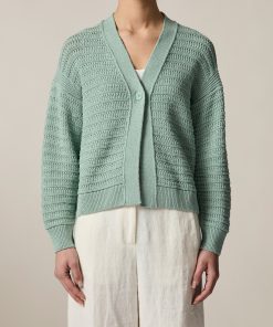 Die Strickjacke zeigt sich im Oversized Fit mit V-Ausschnitt und Statement Struktur. Die überschnittenen Schultern sowie der Einzelne Statement Knopf verleihen der Jacke einen entspannten Look. Material: gefertigt aus merzerisierter Baumwolle ist die Jacke besonders hautfreundlich und besitzt einen edlen Glanz. Haptik: die Jacke ist kühl und kernig im Griff. Styling-Tipp: einfach mit einem Lieblings Basic Shirt kombinieren.