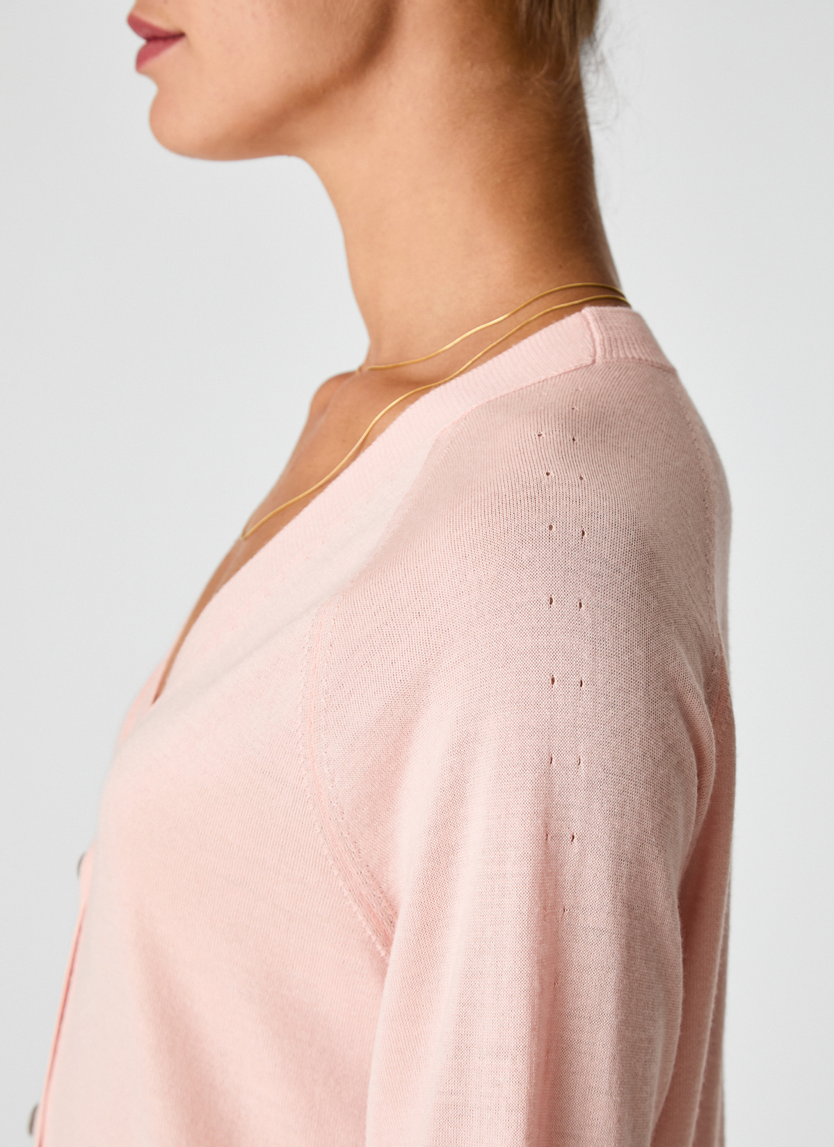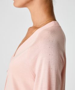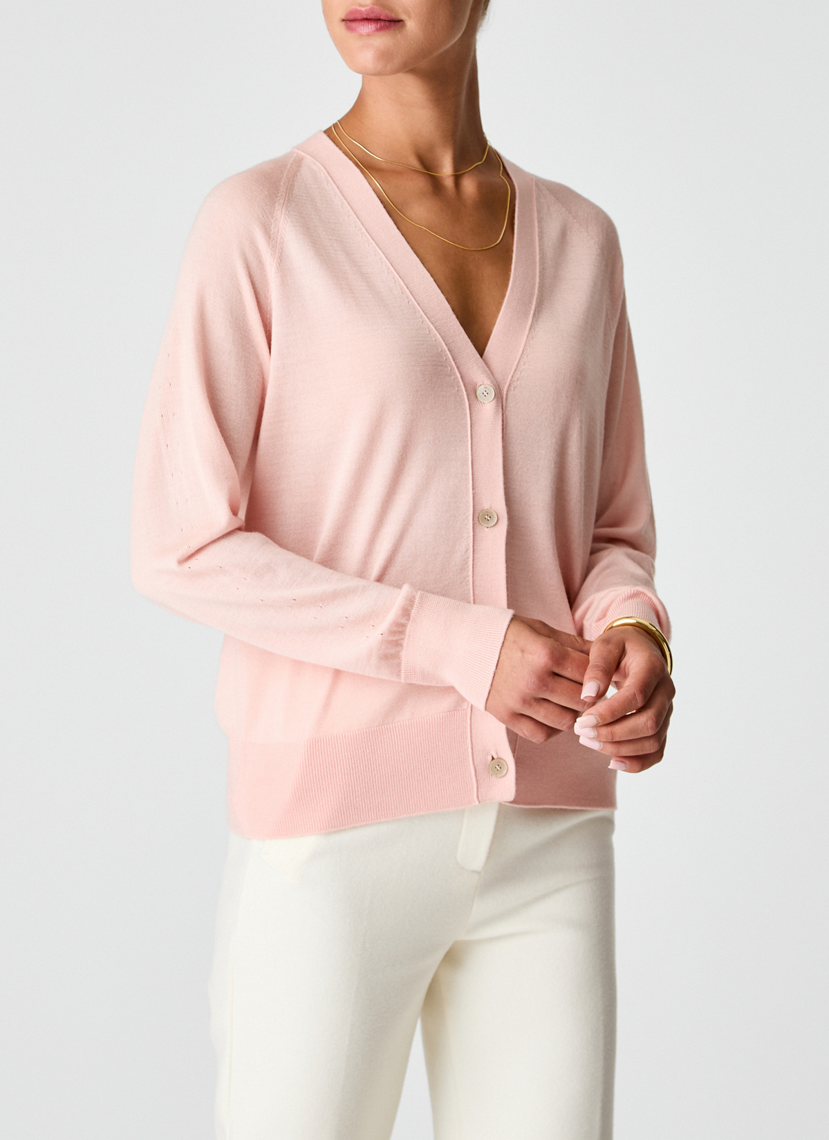 Diese Damen Strickjacke verbindet modernen Komfort mit edler Materialqualität. Die locker geschnittene Passform mit überschnittenen Schultern und leicht voluminösem Schnitt sorgt für einen lässig-eleganten Look. Zarte Pointelle-Muster an den Ärmeln setzen feine Akzente und unterstreichen die feminine Ausstrahlung. Die hochwertige Mischung aus Merinowolle, Seide und Kaschmir ist angenehm leicht, temperaturregulierend und wirkt kühlend auf der Haut – ideal für warme Tage und laue Abende. Sie fühlt sich außergewöhnlich weich und glatt an und sorgt den ganzen Tag über für höchsten Tragekomfort. Ein vielseitiges Lieblingsstück für stilvolle Auftritte bei jeder Gelegenheit.