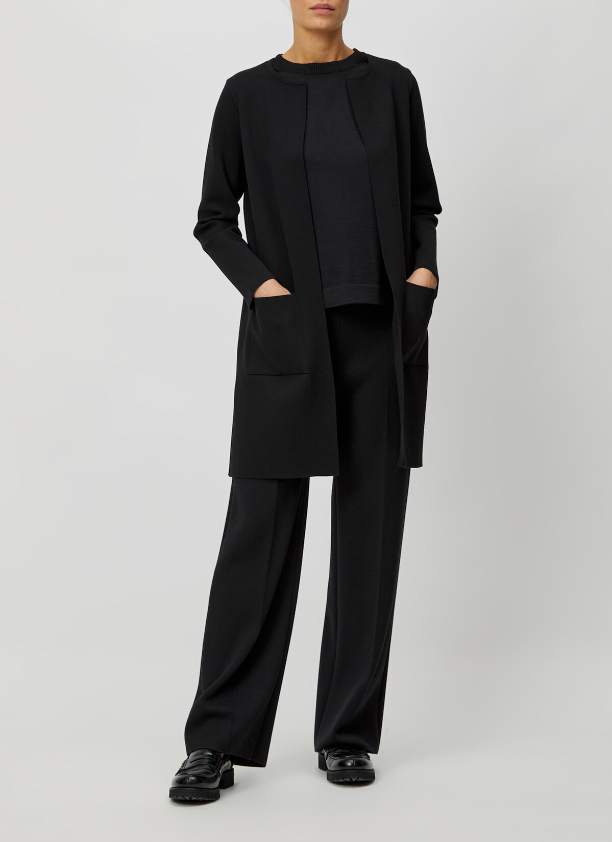 Ein Strickmantel mit sportiver Lässigkeit im Regular Fit! Der offene Strickmantel überzeugt vor allem durch die entspannte Schnittführung, zwei aufgesetzte Taschen sowie die Seitenschlitze für mehr Bewegungsfreiheit. Material: Durch die Viscose-Mischung und die hochwertige Stricktechnik im Milano Rib ist der Strickmantel elastisch und bleibt dennoch formstabil. Haptik: glatte Oberfläche mit kühlem und festem Griff.